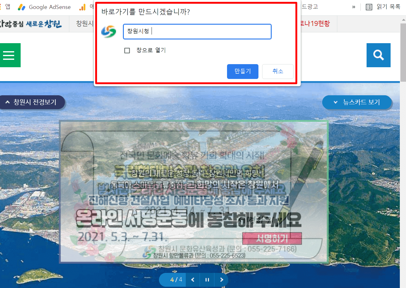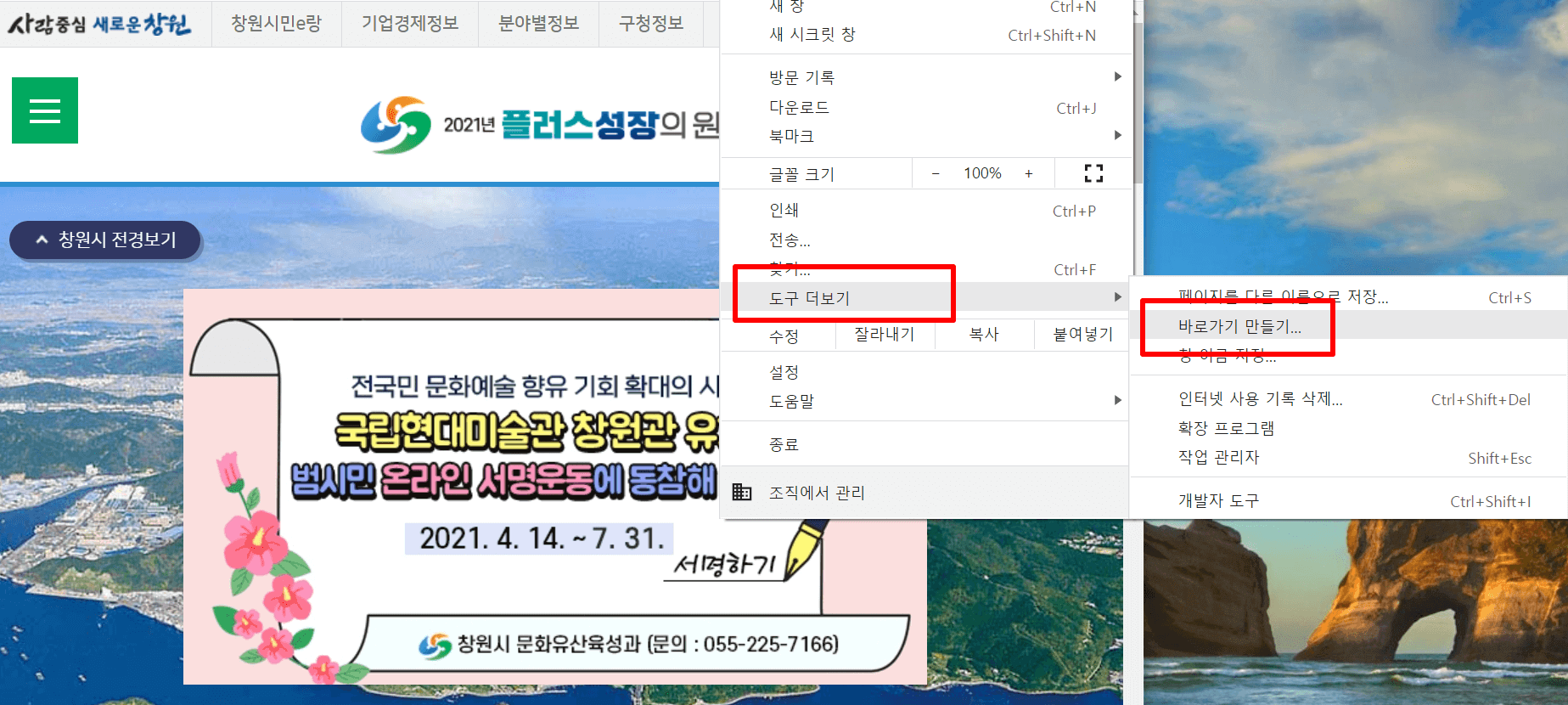 □ 창원시청 홈페이지 바로가기 방법