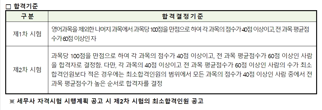 ※ 최종 합격 발표일 기준으로 세무사법 제5조 제2항 및 제5조의 3의 규정에 따라 응시할 수 없는 자로 확인된 경우에는 합격에서 제외된다.