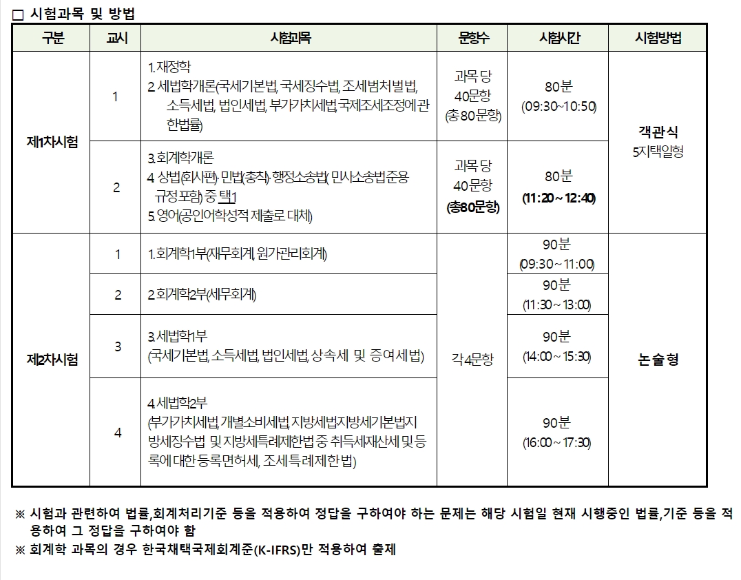 세무사 시험 과목 및 시험 시간은 다음과 같다.