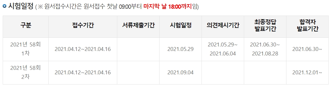 21년 58회 1차, 2차 세무사 시험 일정은 다음과 같다.