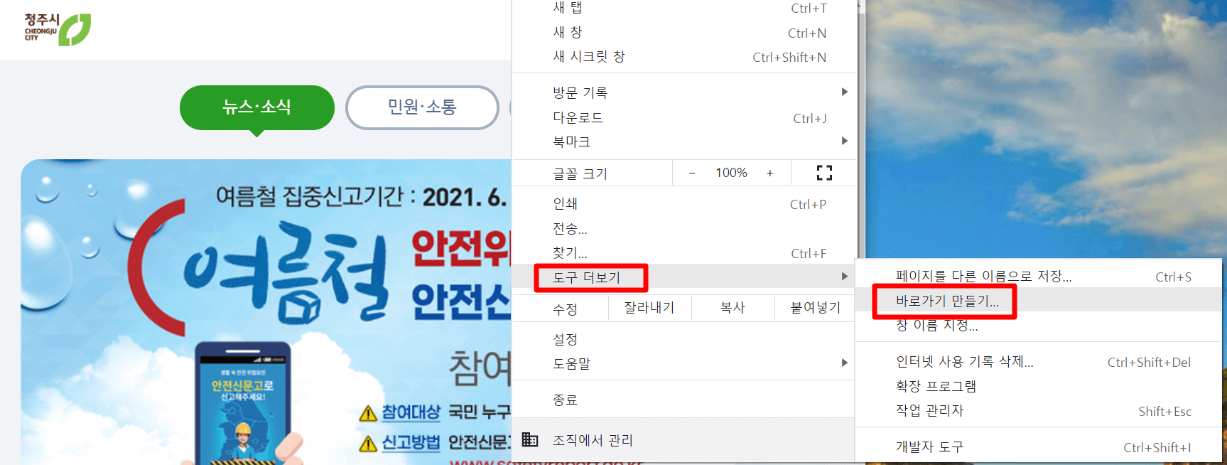 □ 청주시청 홈페이지 바로가기 방법