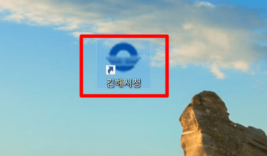 6. 바탕화면에 김해시청 아이콘이 생성이 됩니다. 김해시청 아이콘만 누르시면 김해시청 홈페이지에 바로 접속을 하실 수 있습니다. 그리고 김해시청 시정 주요 시책, 전자 민원창구, 사회복지, 관광정보 안내, 행정 서비스 등을 이용하실 수 있습니다.