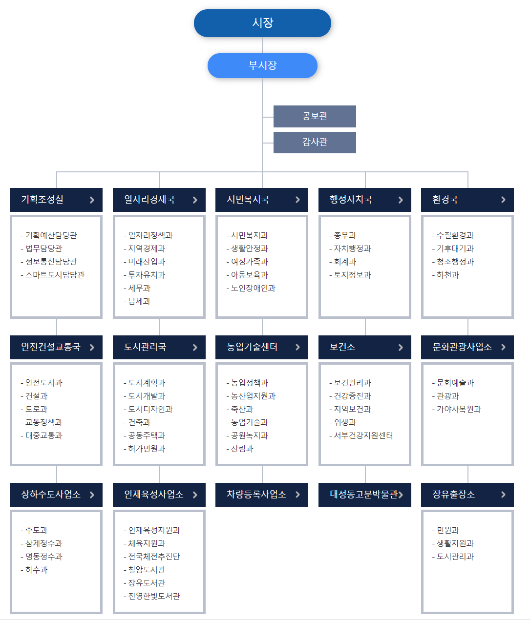 ※ 아래로 들어가시면 김해시청 조직도 자세히 확인하실 수 있습니다.
