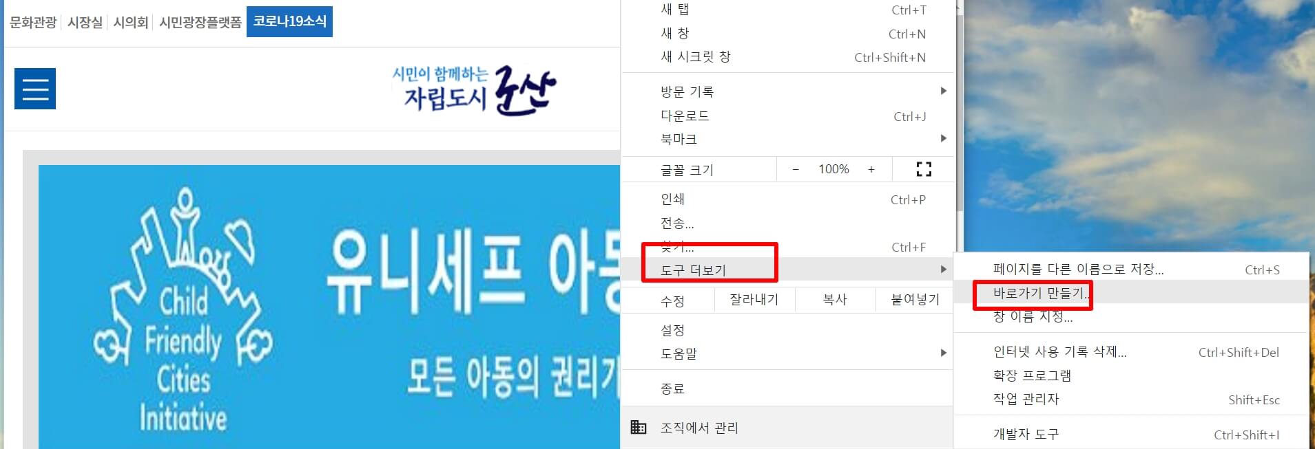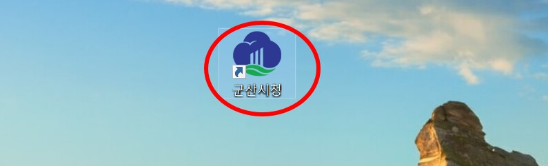 7. 바탕화면에 군산시청 아이콘이 생성이 됩니다. 군산시청 아이콘만 누르시면 군산시청 홈페이지에 바로 접속을 하실 수 있습니다. 그리고 군산시청 시정 주요 시책, 전자 민원창구, 사회복지, 관광 정보, 행정 서비스 등을 이용하실 수 있습니다.