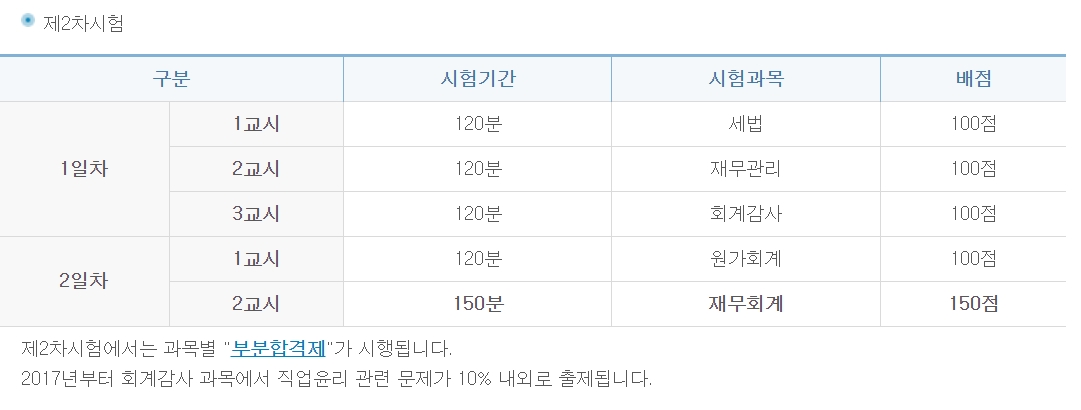 - 공인회계사법 제6조 제1항 각호의 해당자(경력자)가 제2차 시험에 응시한 경우에는 당해연도 제1차 시험에 합격한 것으로 간주하여 부분합격제를 적용합니다.