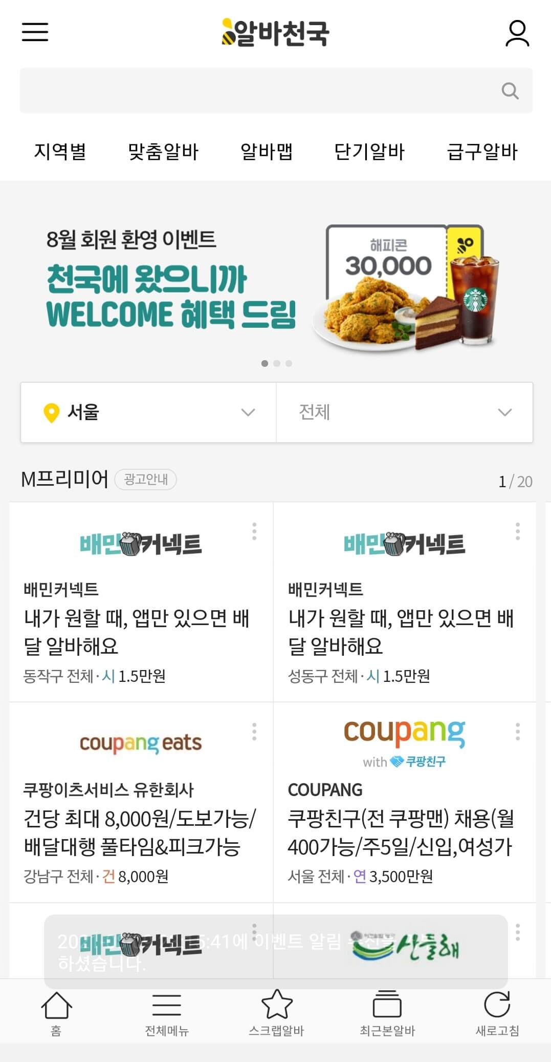 알바천국 구인구직 바로가기, 일자리, 모바일 어플 다운로드(설치)