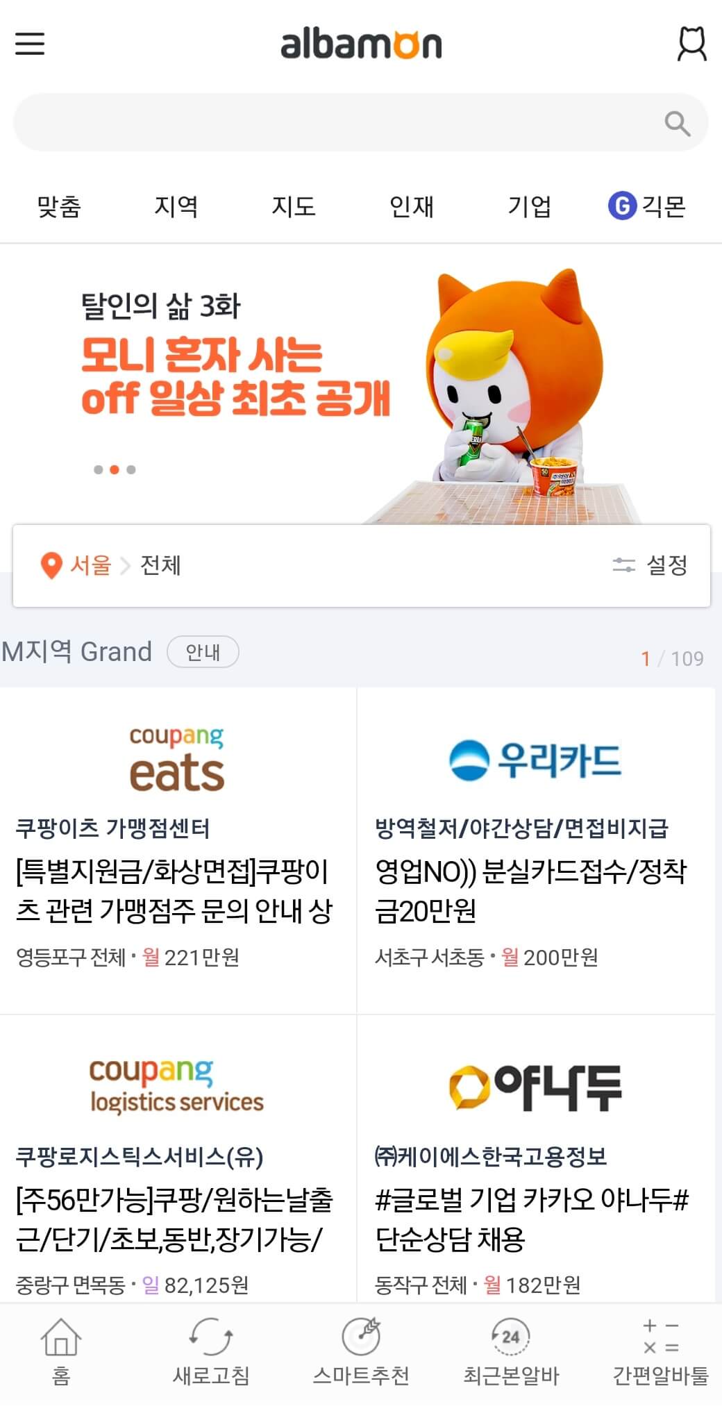 알바몬 구인구직 바로가기, 일자리, 모바일 어플 다운로드(설치)