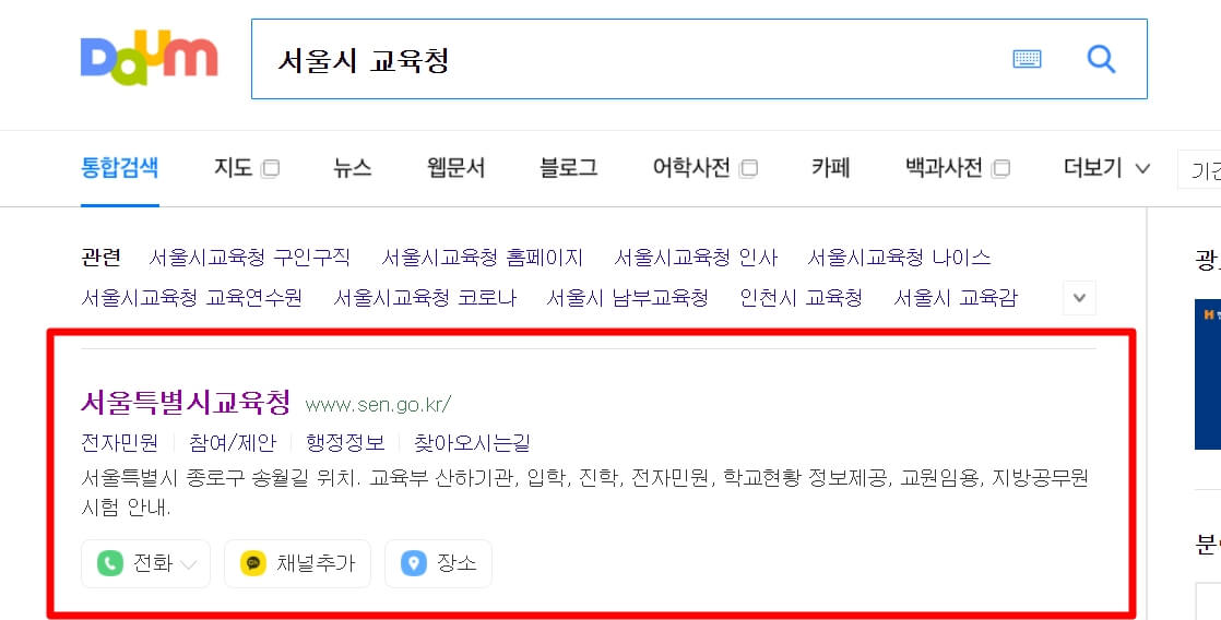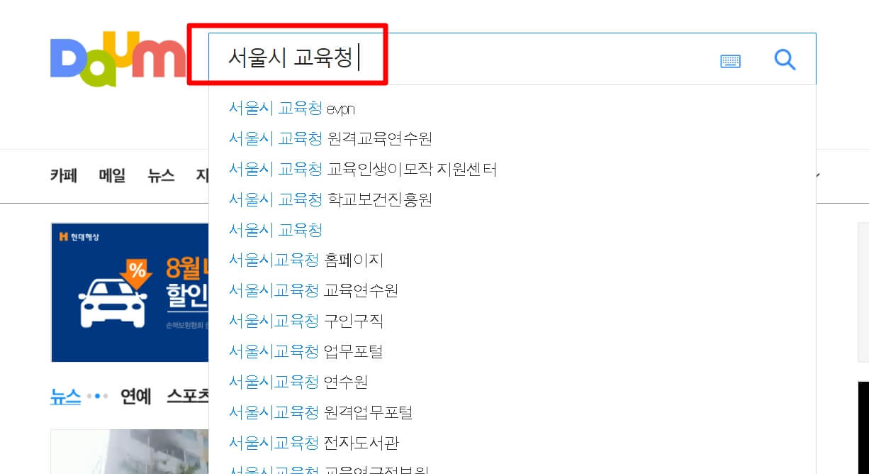 1. 다음(daum) 검색창에 "서울시 교육청"이라고 검색을 합니다.