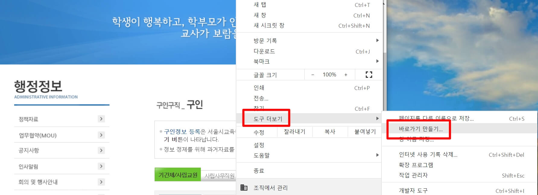 안녕하세요. 이번 시간에는 서울시 교육청 구인구직 바로가기 방법에 대하여 알려 드리겠습니다. 바로가기를 바탕화면에 만들어놓으시면 빠른 접속으로 서울시 교육청 구인구직에 접속하실 수 있습니다.