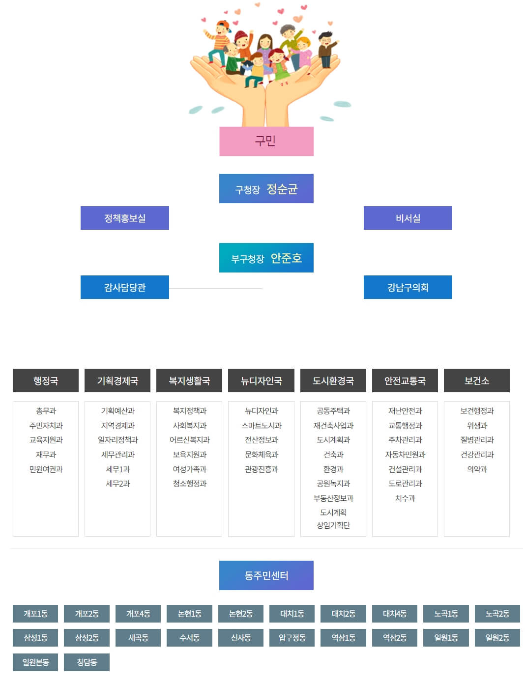 강남구청 조직도는 다음과 같습니다.