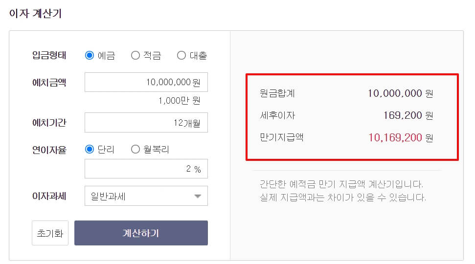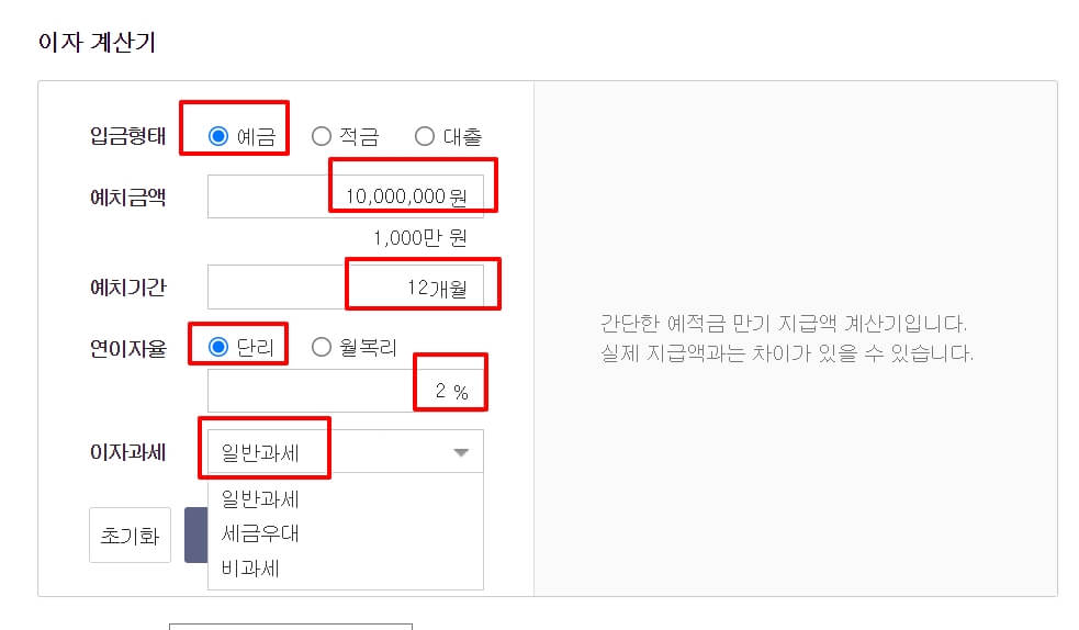 예금, 적금, 대출이자 계산기 사용방법