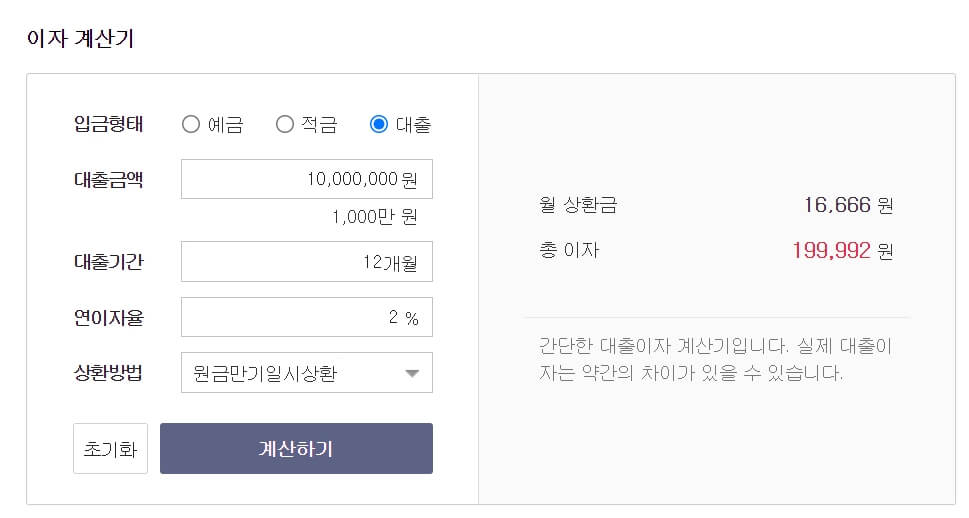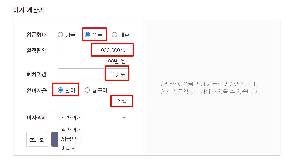 예금, 적금, 대출이자 계산기 사용방법