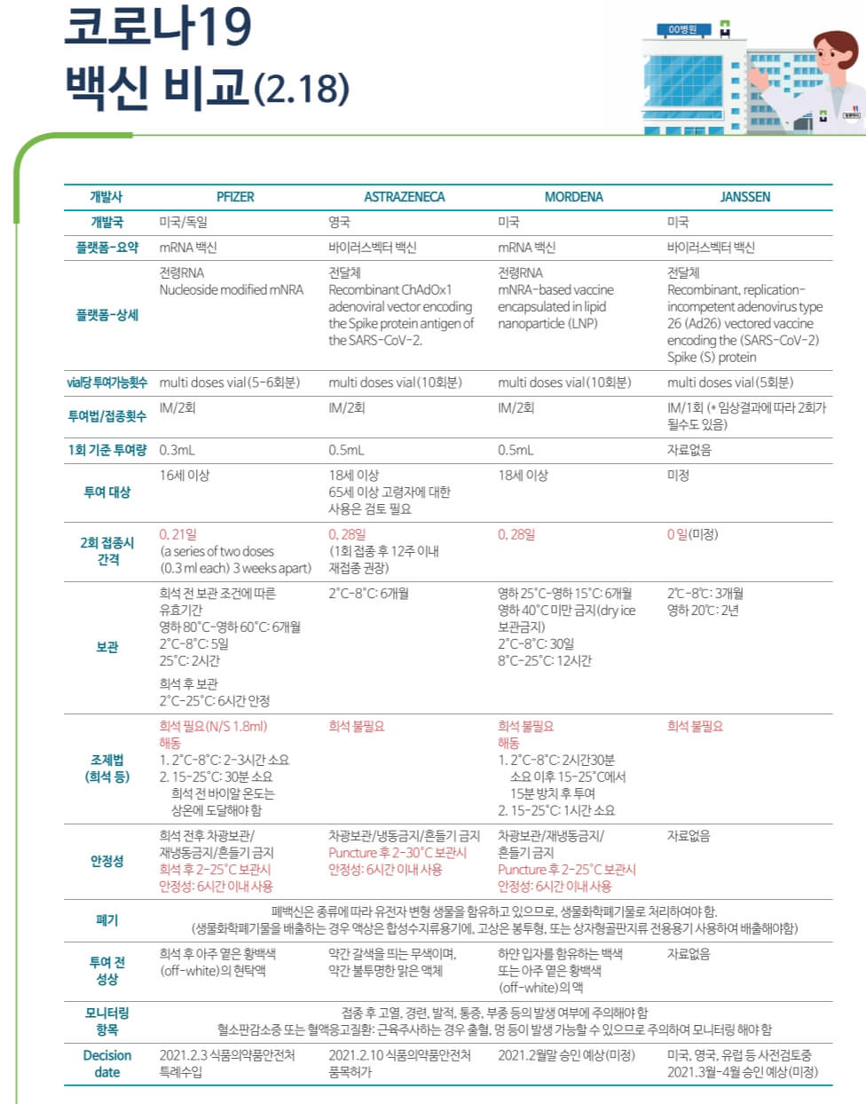 화이자, 모더나, 아스트라제네카, 얀센 백신 비교