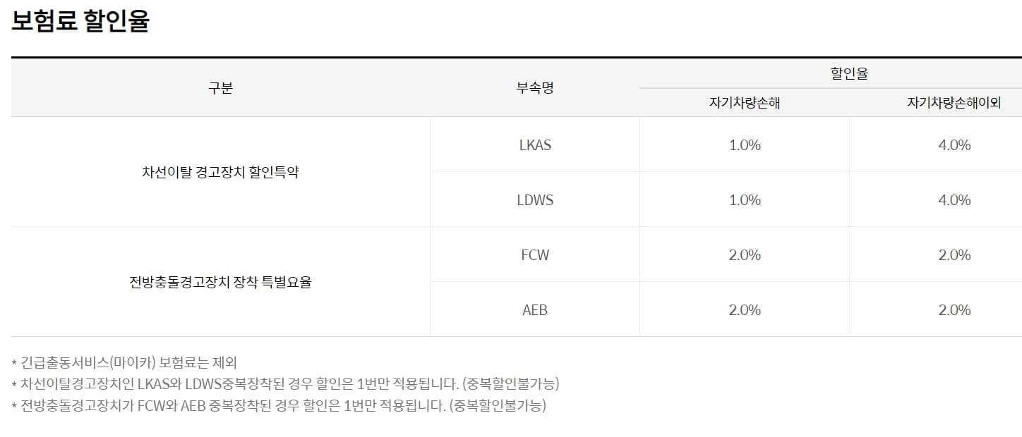 - 차량연식이 10년 미만일 경우 약 1% 할인특약입니다.
