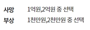 - 사고 때문에, 자신이 상처를 입거나 사망했을 경우 보상.