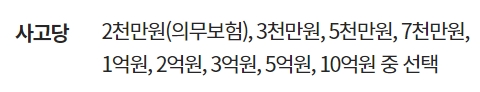 - 내 잘못으로 차량이 파손되거나 도난을 당했을 경우 보상.