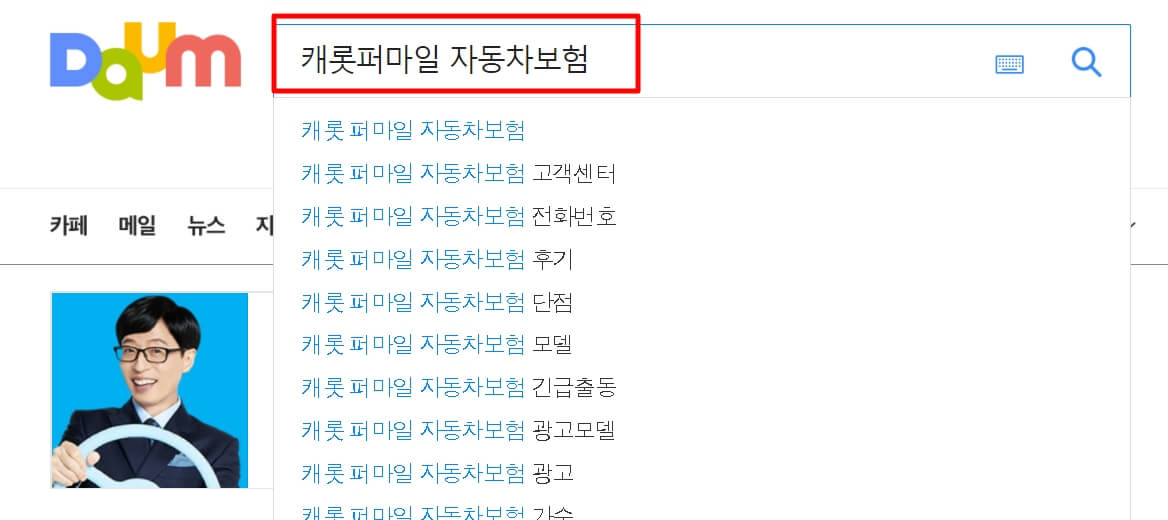 1. 다음(daum) 검색창에 "캐롯퍼마일 자동차보험"이라고 검색을 합니다.