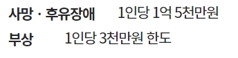 - 사고 때문에 자신이 상처를 입거나 사망했을 경우 보상.