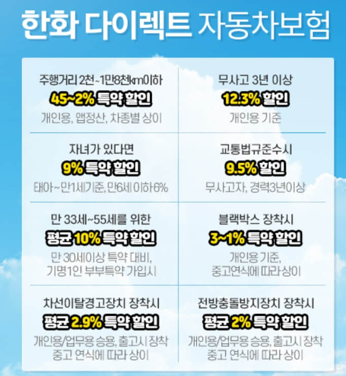 한화 다이렉트 자동차보험 가입방법, 할인혜택, 보장내용