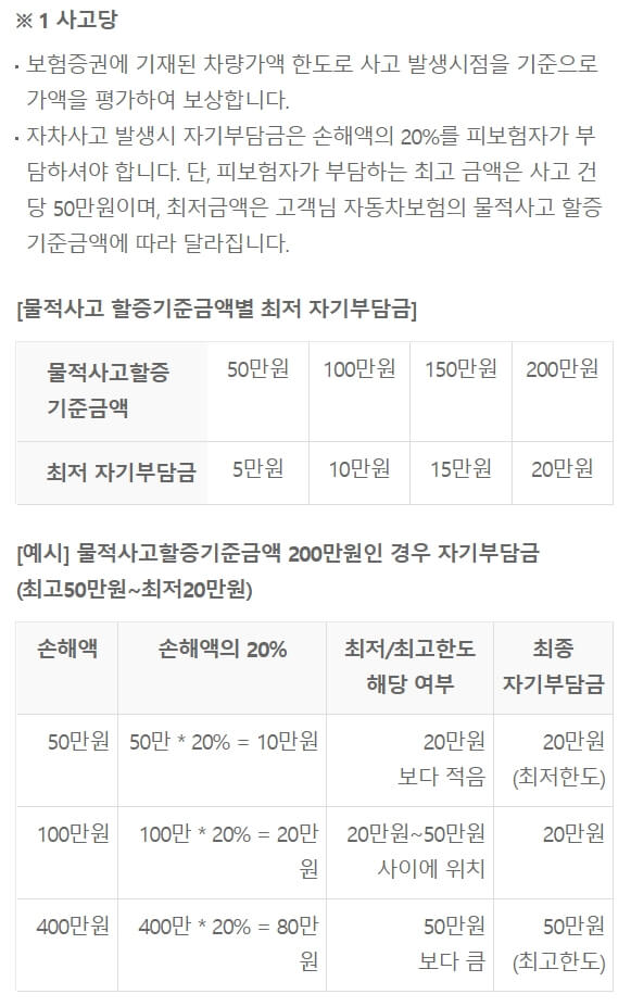 - 대인, 대물의 경우 약관에서 정한 바에 따른 사고부담금을 납입하면 보상 가능합니다.