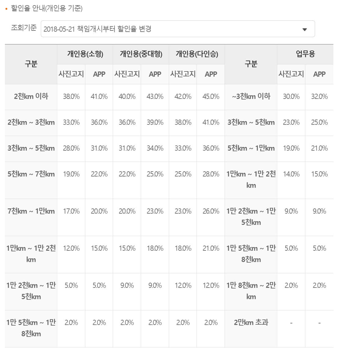 - 연간 주행거리가 2,000km이하면 45%까지 18,000km 이하는 2% 보험료를 환급해줍니다.