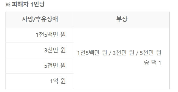 - 피보험자동차를 소유, 사용, 관리하는 동안에 피보험자동차의 사고로 피보험자 본인, 배우자, 부모 등이 사망하거나 다친 경우에 보상합니다.