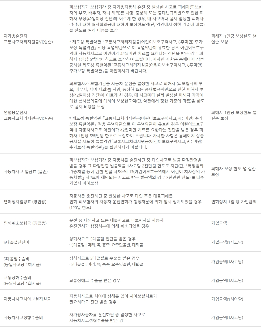 □ 동부화재 운전자보험 보장내용