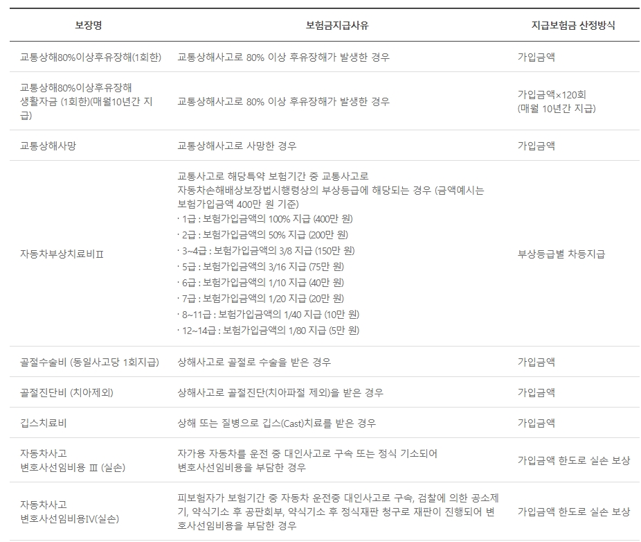 □ 동부화재 운전자보험 보장내용