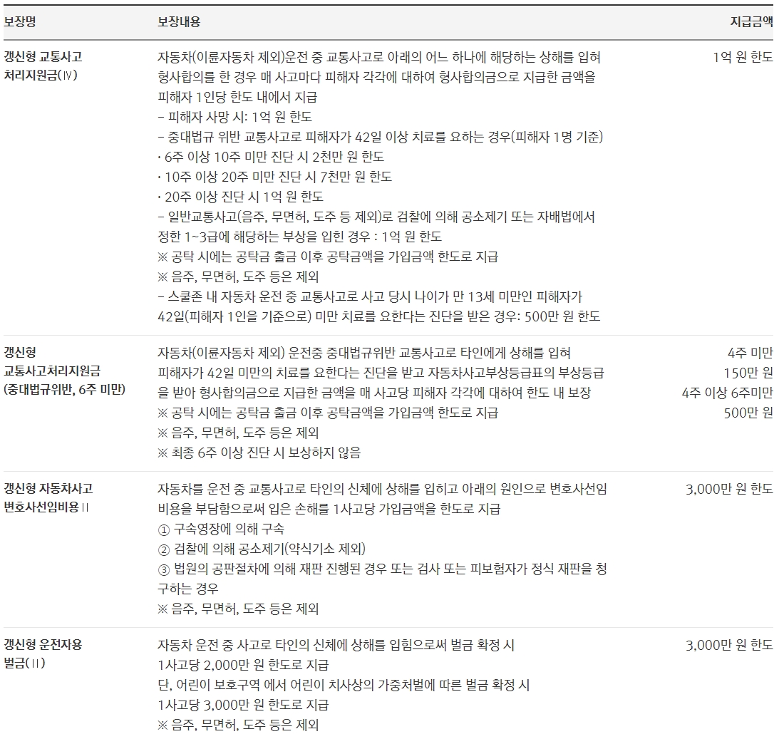 ※ 형사처벌 사고 중 보상 범위