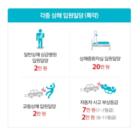 4. 사고 나면 입원할 일도 많죠? 상해 사고 입원비는 상황에 따라 추가로 보장받으세요.(특약)