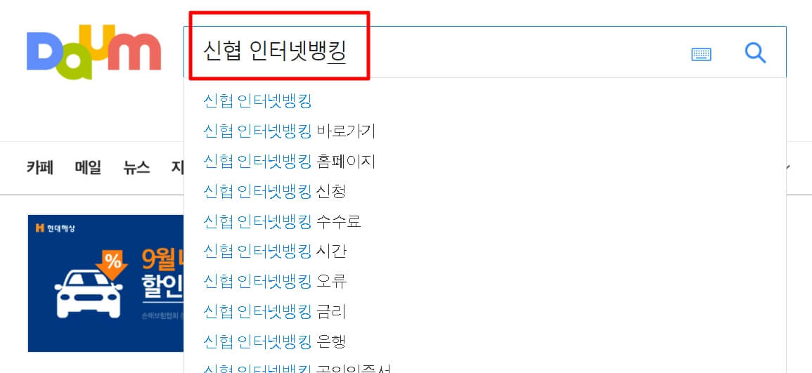 1. 다음(daum) 검색창에 "신협 인터넷뱅킹"이라고 검색을 합니다.