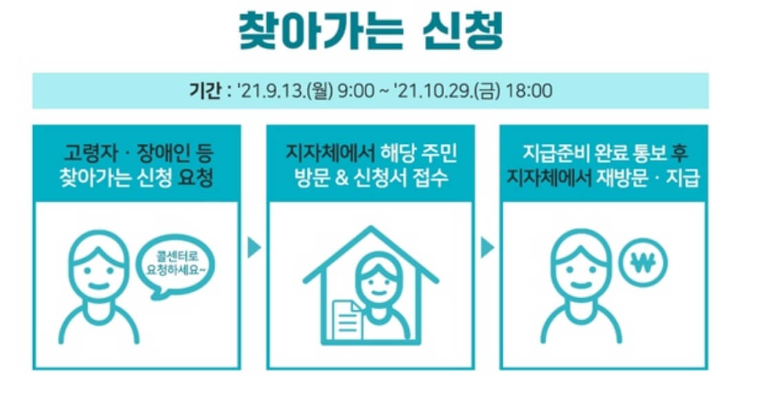 고령자 등 거동이 불편하신 분들을 대상으로 자치단체에서 직접 방문하여 지원금 신청을 도와드리는 "찾아가는 신청"을 운영합니다.