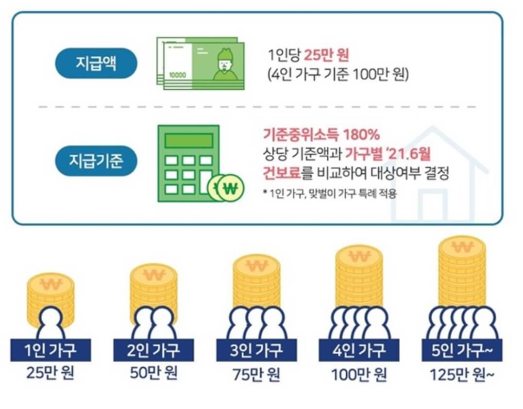 안녕하세요. 이번 시간에는 소득 하위 88% 가구 국민을 대상으로 1인당 25만원씩 9월 6일(월)부터 지급을 합니다. 5차 재난지원금 대상, 신청방법, 사용처에 대하여 알아보겠습니다.