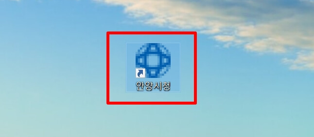 7. 바탕화면에 안양시청 아이콘이 생성이 됩니다. 안양시청 아이콘만 누르시면 안양시청 홈페이지에 바로 접속을 하실 수 있습니다. 그리고 안양시청 시정 주요 시책, 전자 민원창구, 사회복지, 관광 정보, 행정 서비스 등을 이용하실 수 있습니다.