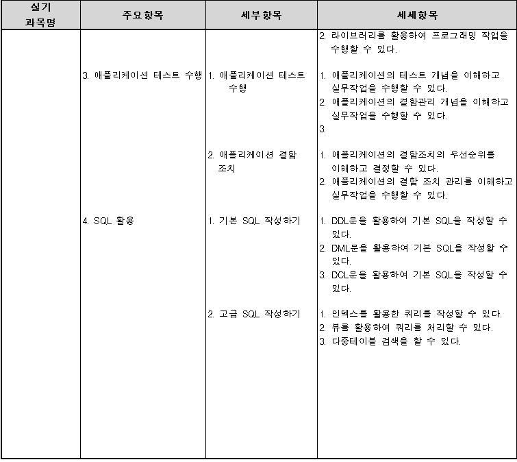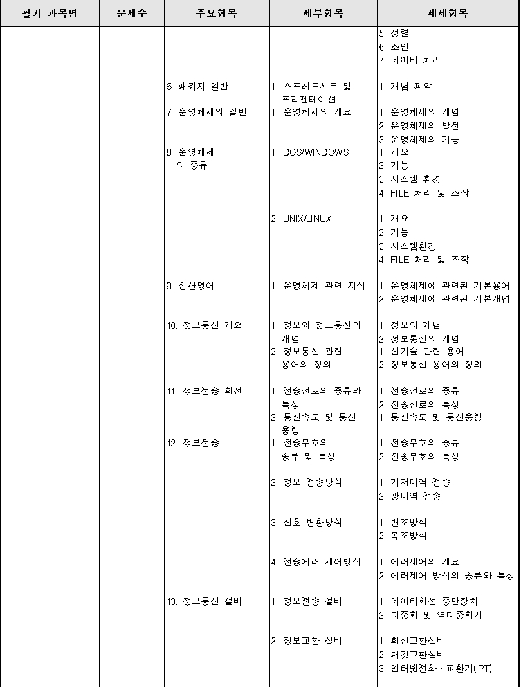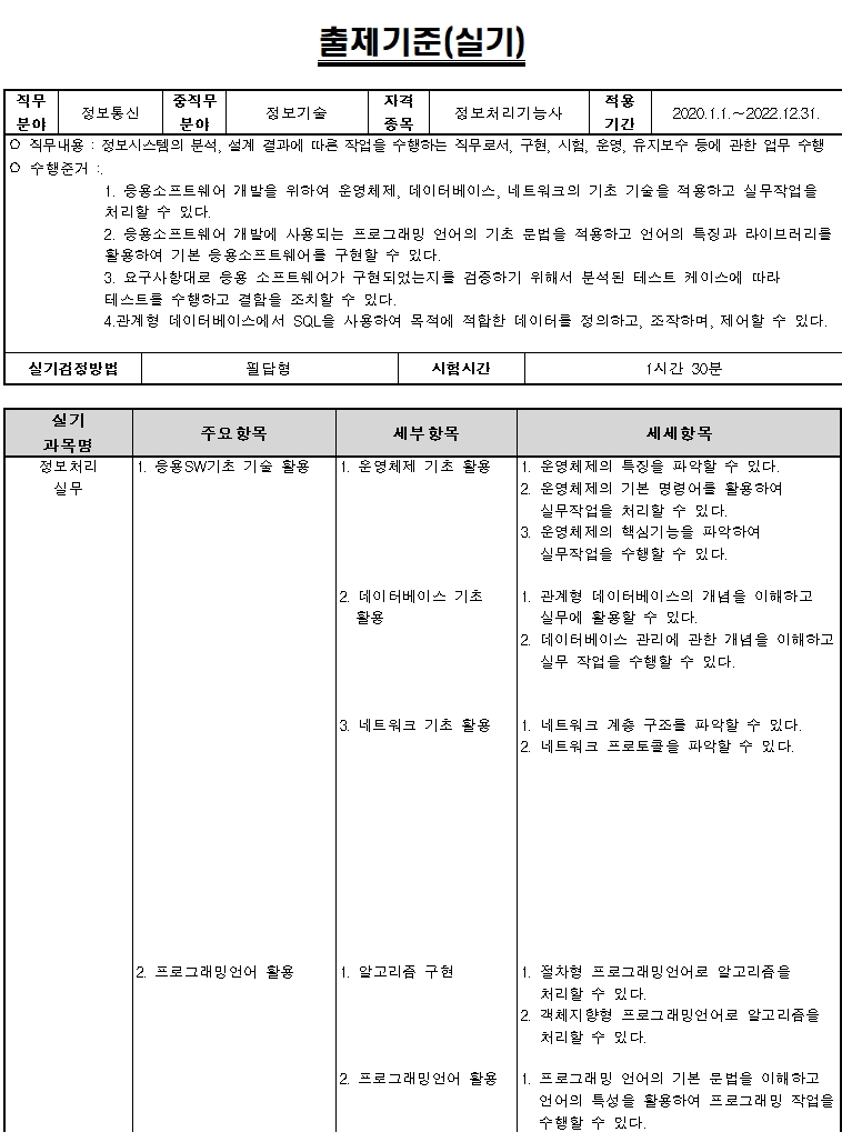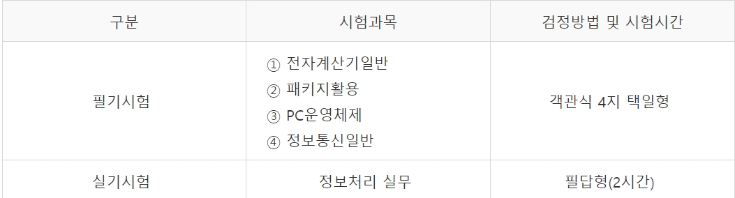 정보처리기능사 시험 과목은 필기, 필기로 나누어지며 자세한 과목은 다음과 같습니다.