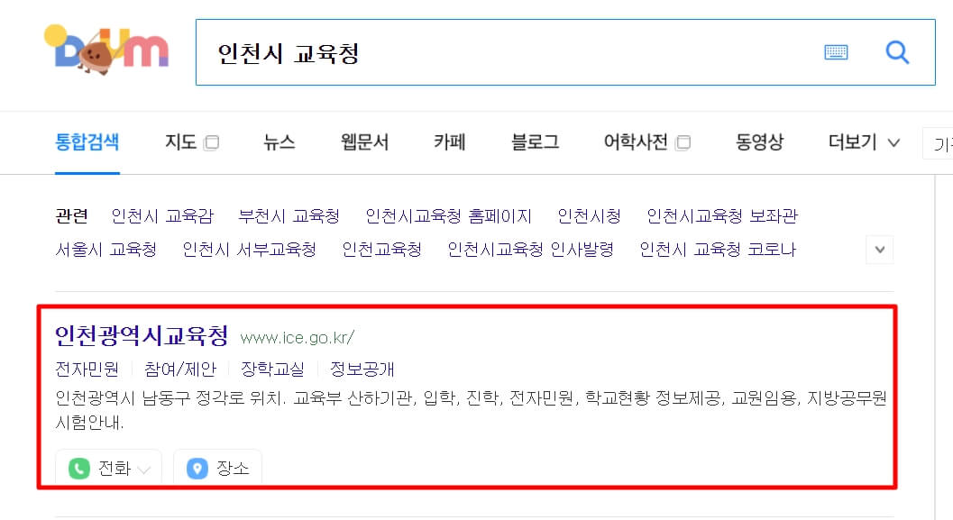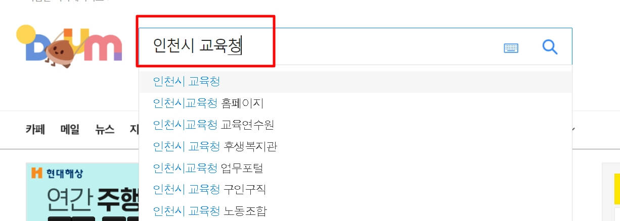 1. 다음(daum) 검색창에 "인천시 교육청"이라고 검색을 합니다.