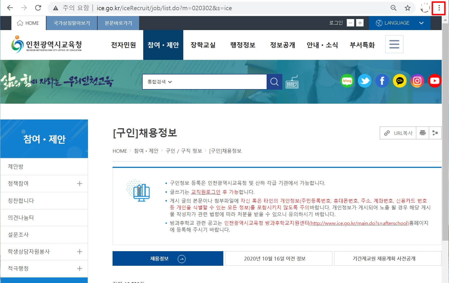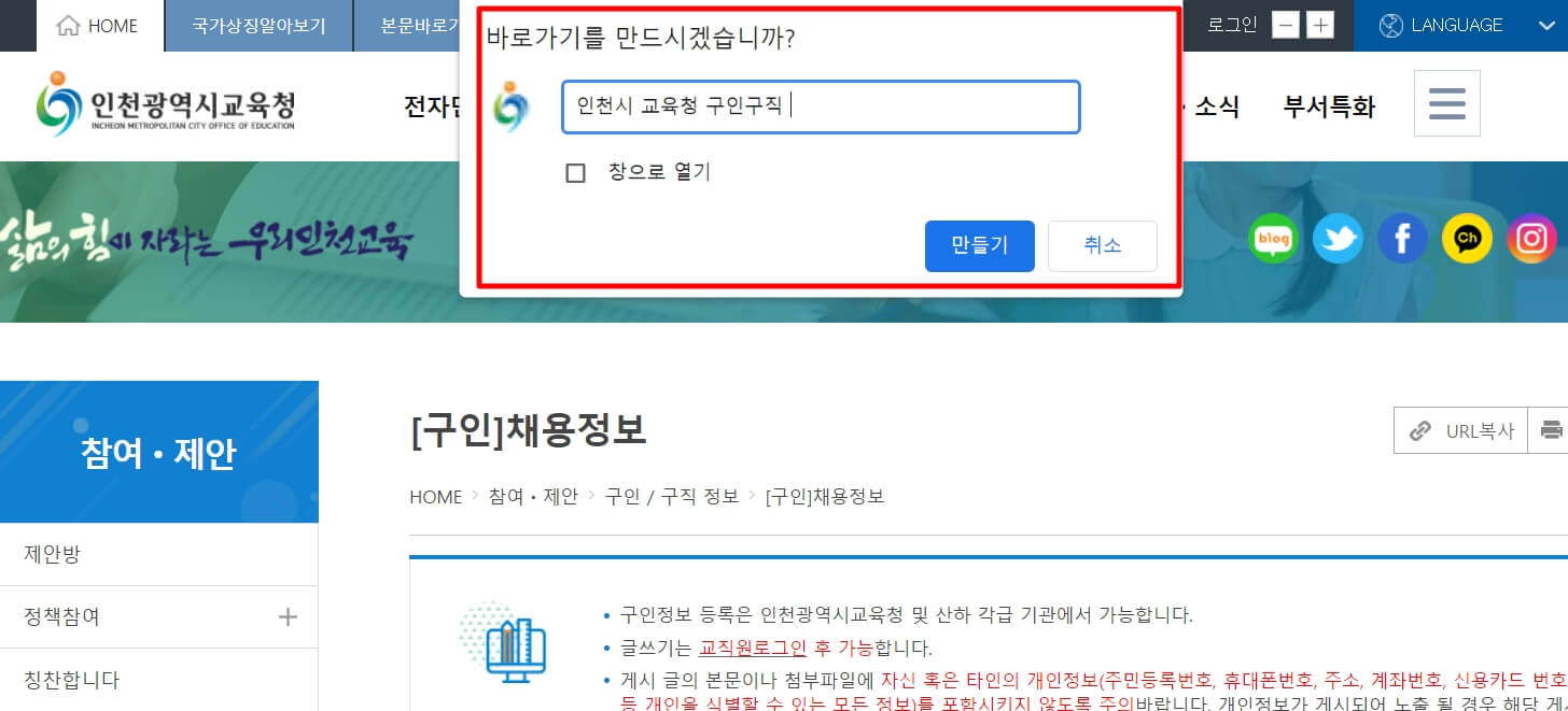 인천시 교육청 구인구직 바로가기(일자리 꿀팁)