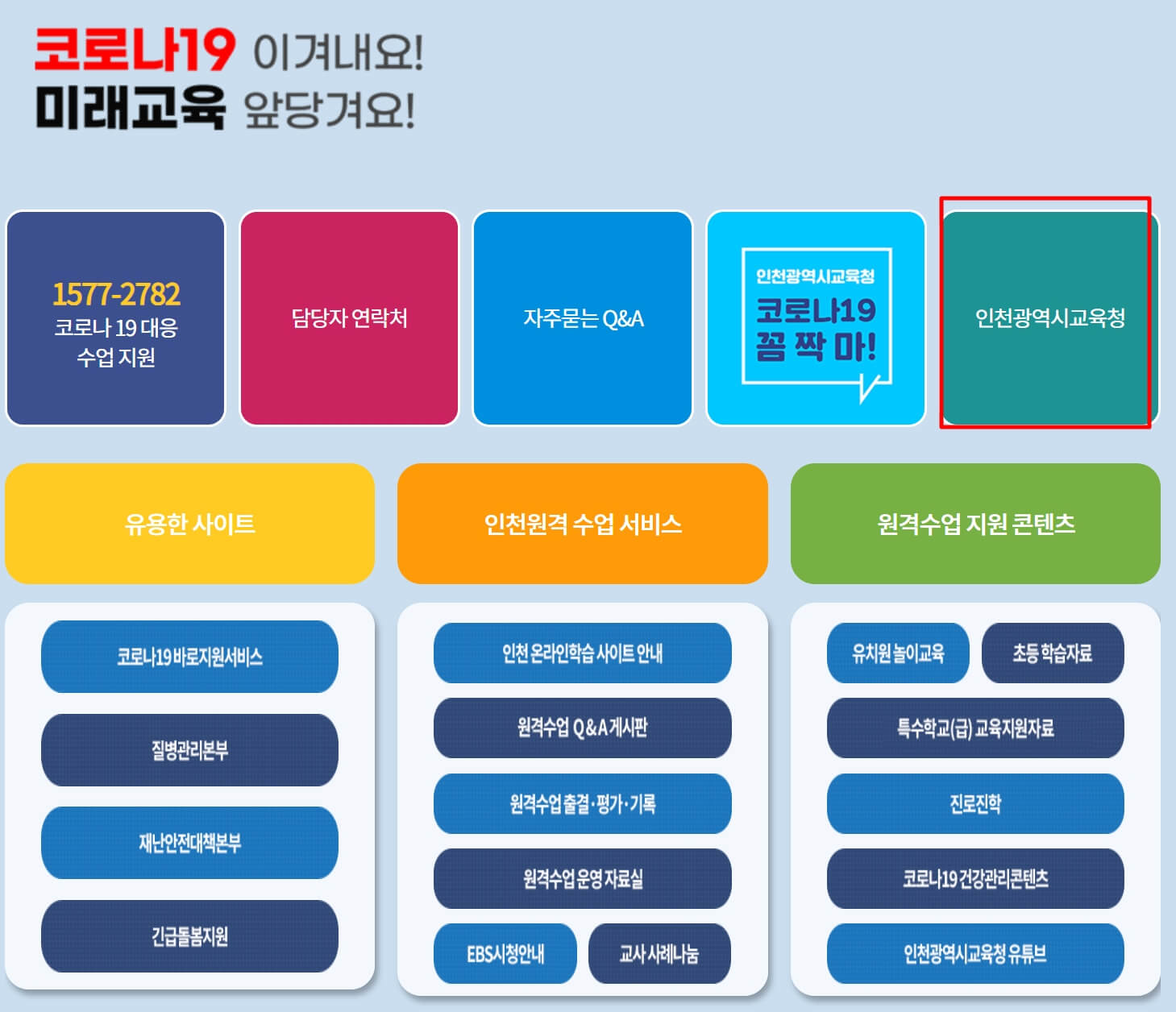 2. 인천시 교육청을 누르셔서 접속을 합니다.