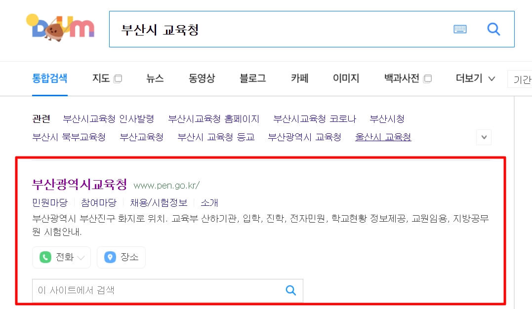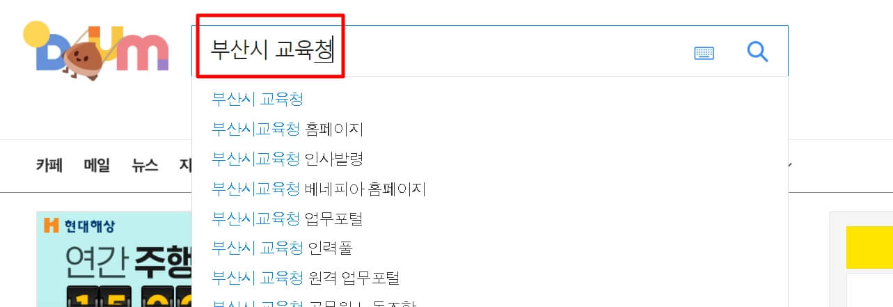 1. 다음(daum) 검색창에 "부산시 교육청"이라고 검색을 합니다.