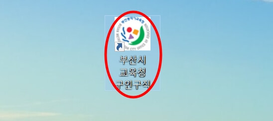 9. 바탕화면에 부산시 교육청 구인구직 아이콘이 생성이 됩니다. 부산시 교육청 구인구직 아이콘만 누르시면 부산시 교육청 구인구직 홈페이지에 바로 접속을 하실 수 있습니다.