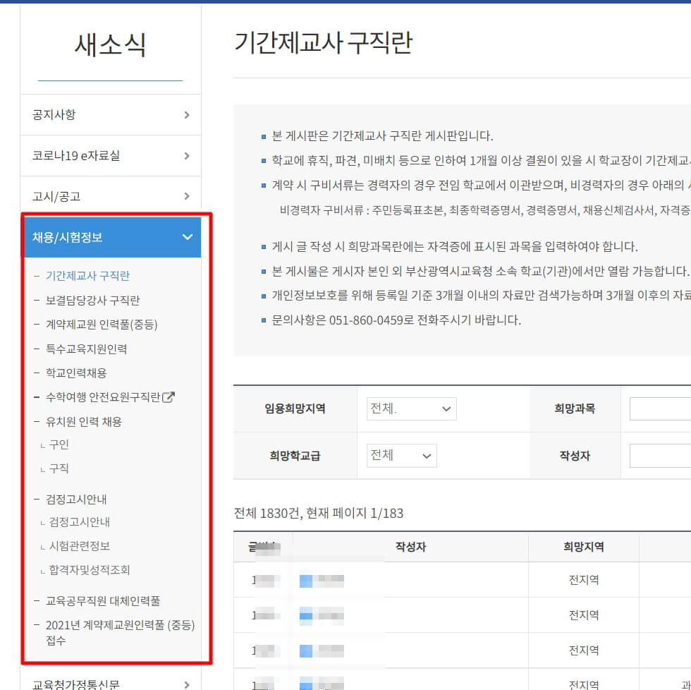 부산시 교육청 구인구직 바로가기(일자리 꿀팁)
