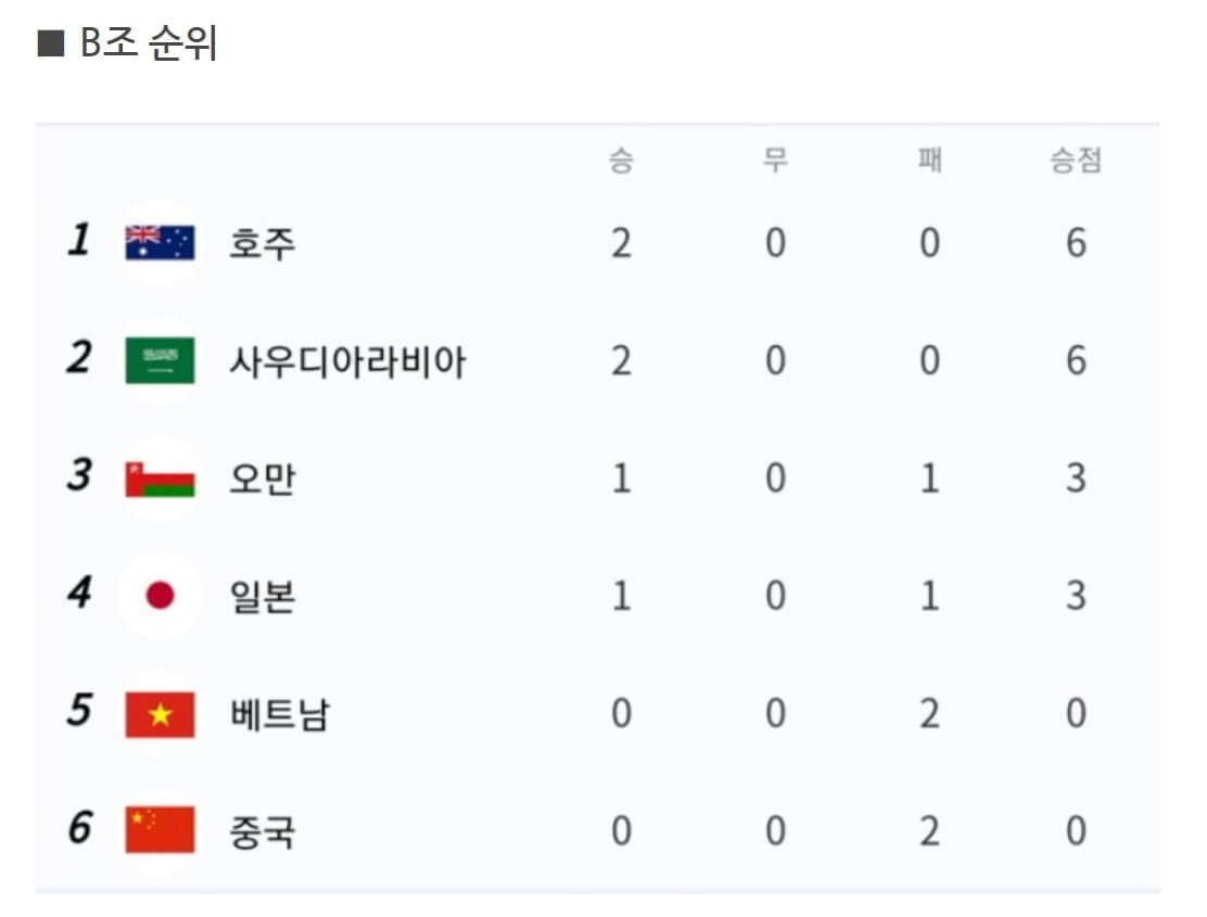 ※ 현재 월드컵 최종예선 순위