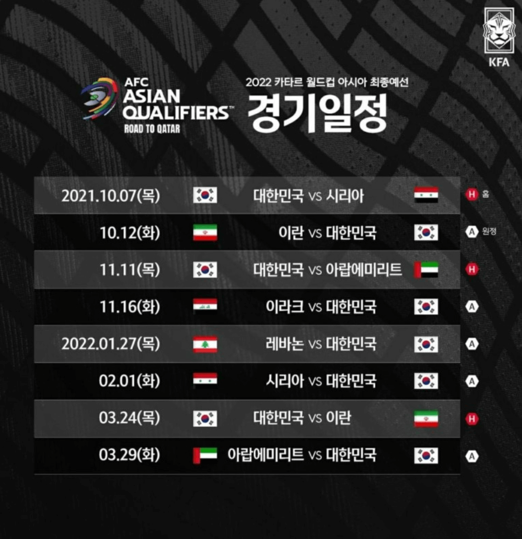 □ 2022 카타르월드컵 축구 국가대표 최종예선전 일정(10월)