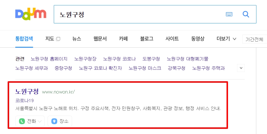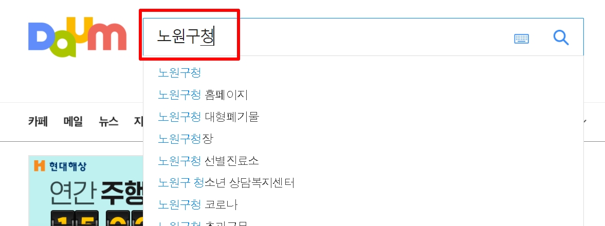 1. 다음(daum) 검색창에 "노원구청 홈페이지"라고 검색을 합니다.