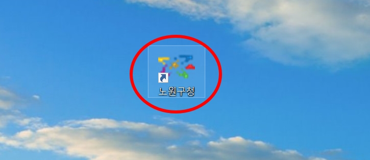 7. 바탕화면에 노원구청 아이콘이 생성이 됩니다. 노원구청 아이콘만 누르시면 노원구청 홈페이지에 바로 접속을 하실 수 있습니다. 그리고 노원구시청 시정 주요 시책, 전자 민원창구, 사회복지, 관광 정보, 행정 서비스 등을 이용하실 수 있습니다.