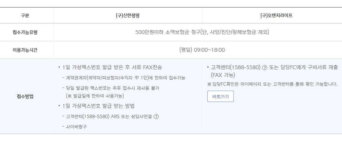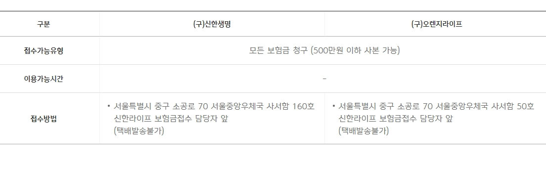(안내) 신한생명 보험청구서류, 청구방법