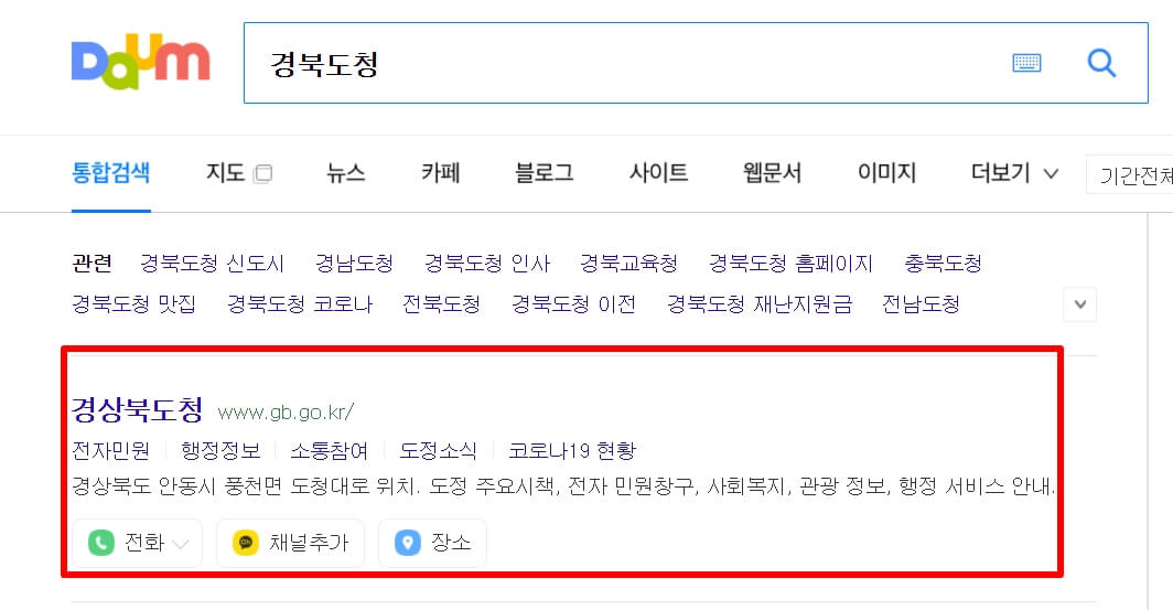 1. 다음(daum) 검색창에 "경북도청"라고 검색을 합니다.