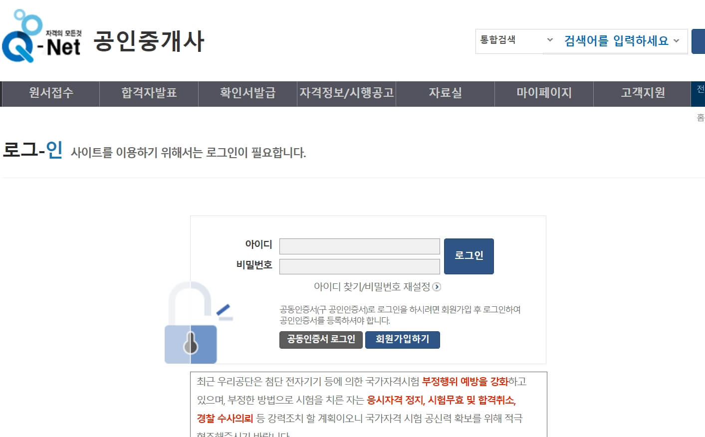2. 큐넷 공인중개사 "원서접수"를 누르셔서 큐넷에 접속을 합니다.
