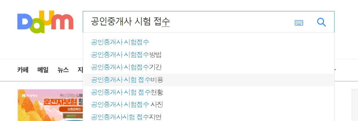 1. 다음 검색창에 "공인중개사 시험접수" 검색을 합니다.