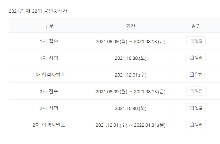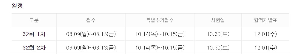 - 공인중개사 32회 1차: 10. 14(목) ~ 10. 15(금)
